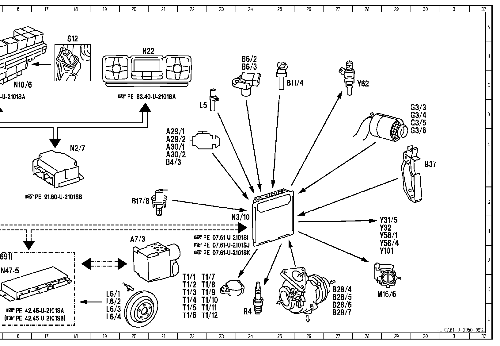 Component Description/Coordinates, N22 To Y101: