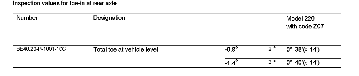Inspection values for toe-in at rear axle: