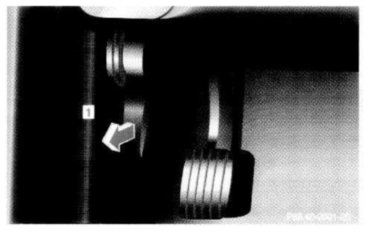 To unlock the hood, pull release lever (1) under the driver's side of the instrument panel. At the same time a handle will extend out of the radiator grill (it may be necessary to lift the hood up slightly).