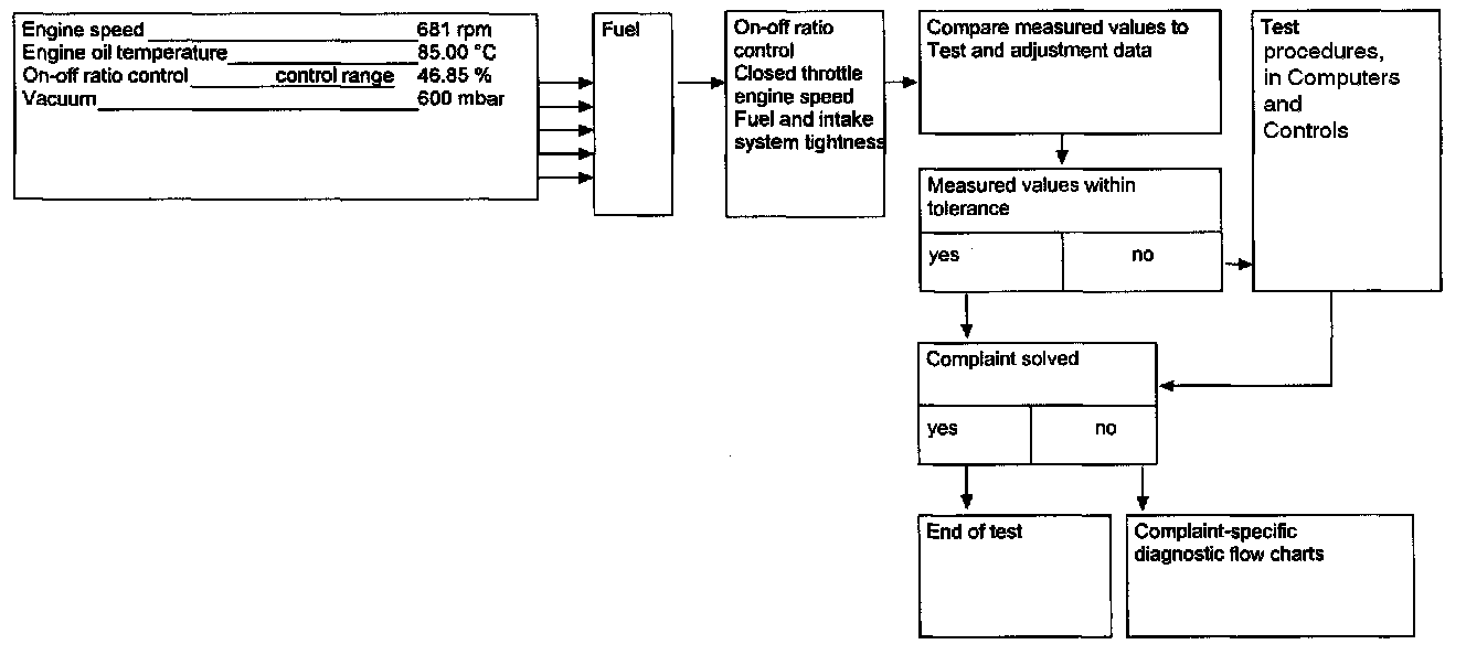 - The idle speed control can be checked with the dwell test program on engines 102 and 103. In this case, the dwell % measurement is used as an on-off ratio measurement. For the measurement use test cable 102 589 14 63 00 or 103 589 00 63 00.