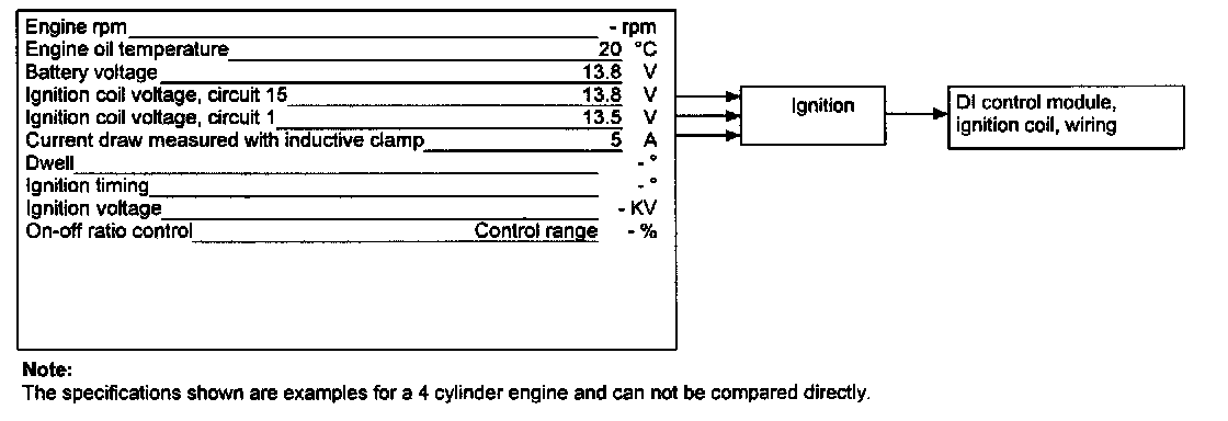 NOTE: The starting test on engines 104, 111 HFM-SFI is only possible with the oscilloscope.