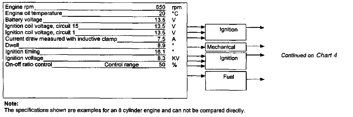 - Specifications shown below must appear on the engine analyzer screen.