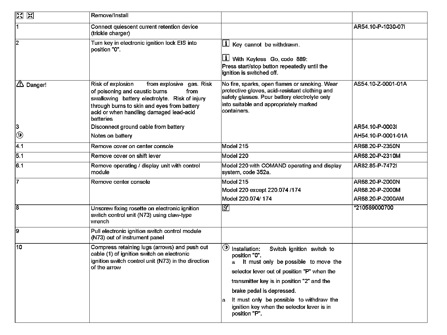 AR27.60-P-0122I Remove/install ignition lock control cable