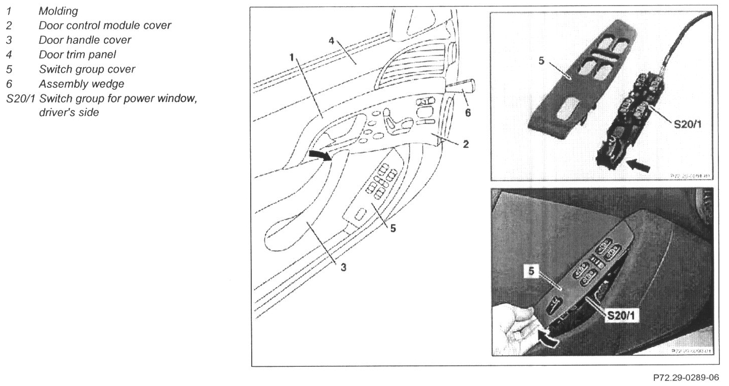 NOTE: Power window switch group, driver's side (S20/1) can only be replaced completely.