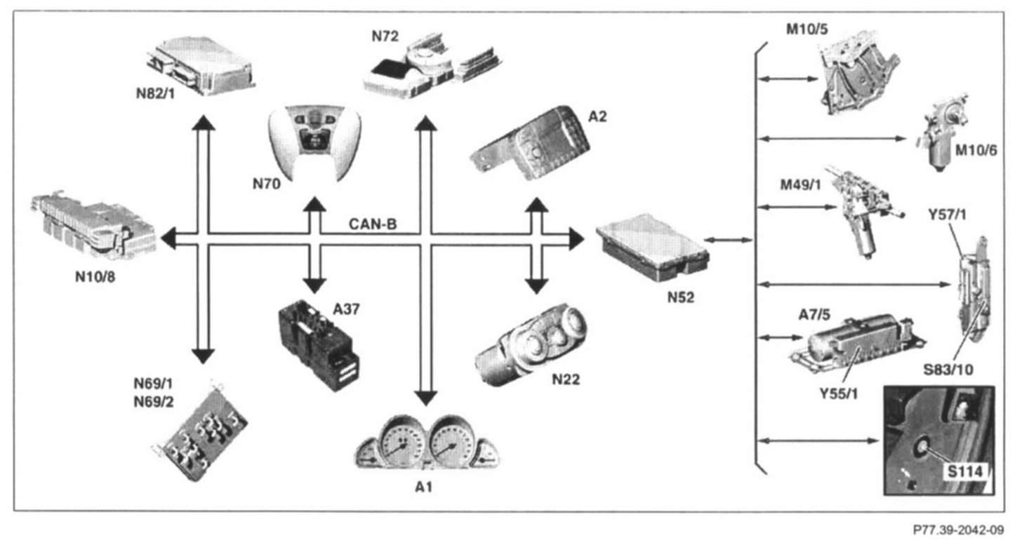 The UVS control module (N52) directly actuates the following functions and is connected with other control modules via the passenger compartment CAN bus.