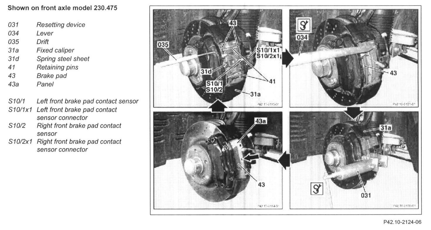 - Only brake pad kits approved by Mercedes Benz must be installed.