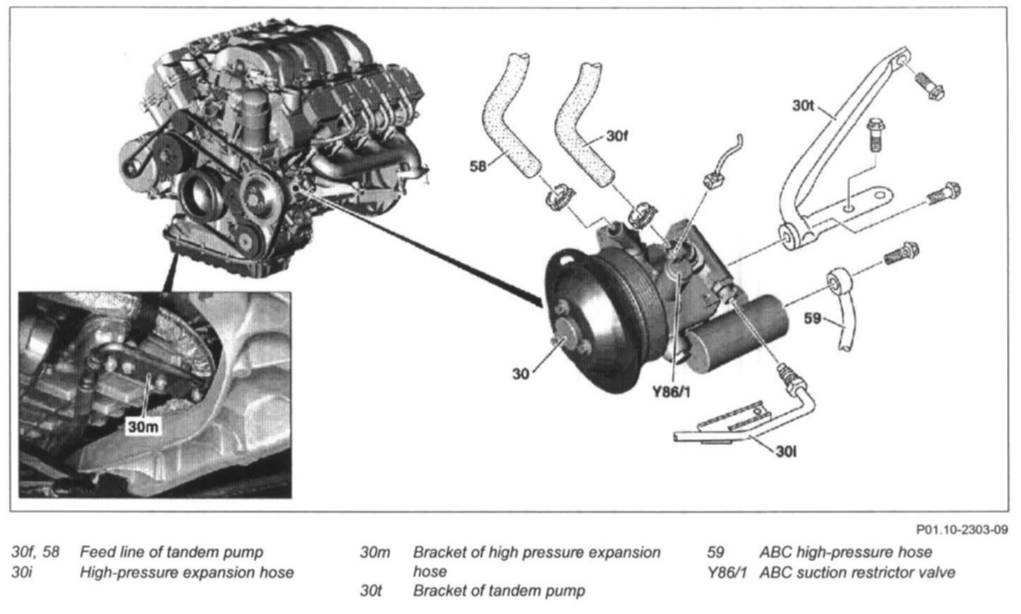 10 Disconnect high pressure expansion hose (30i) and unscrew from tandem pump