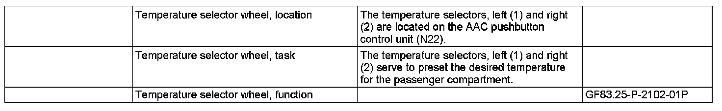 GF83.25-P-2105R Temperature Selector Wheel, Location / Task / Function