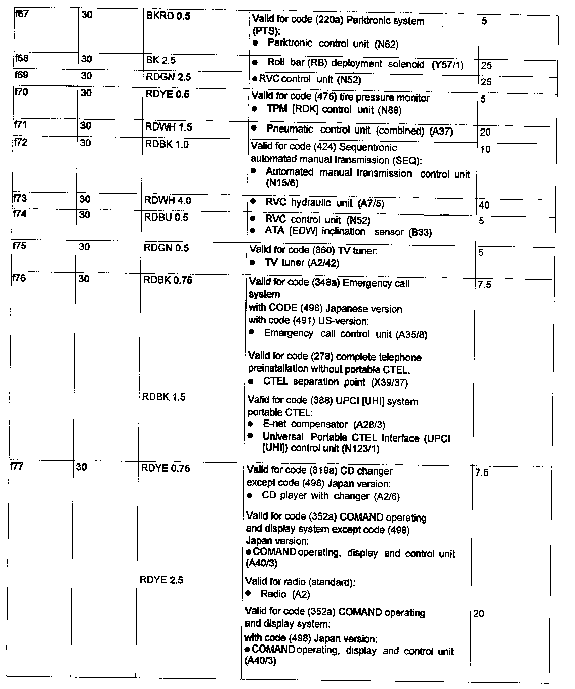 Fuse 67 - 77, As Of 6/1/04: