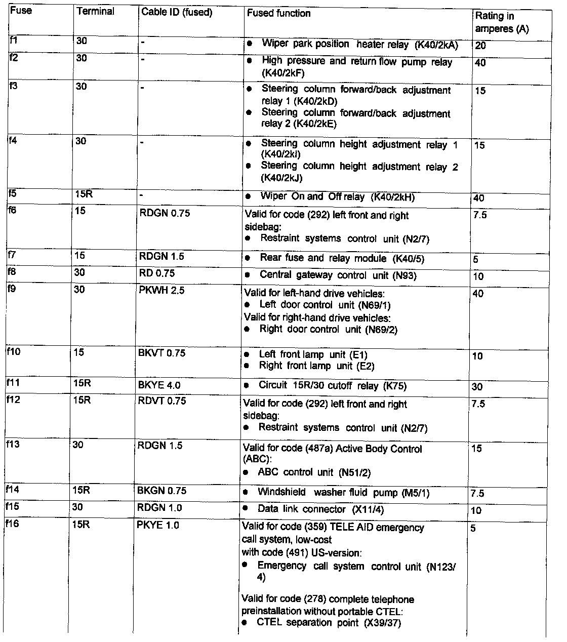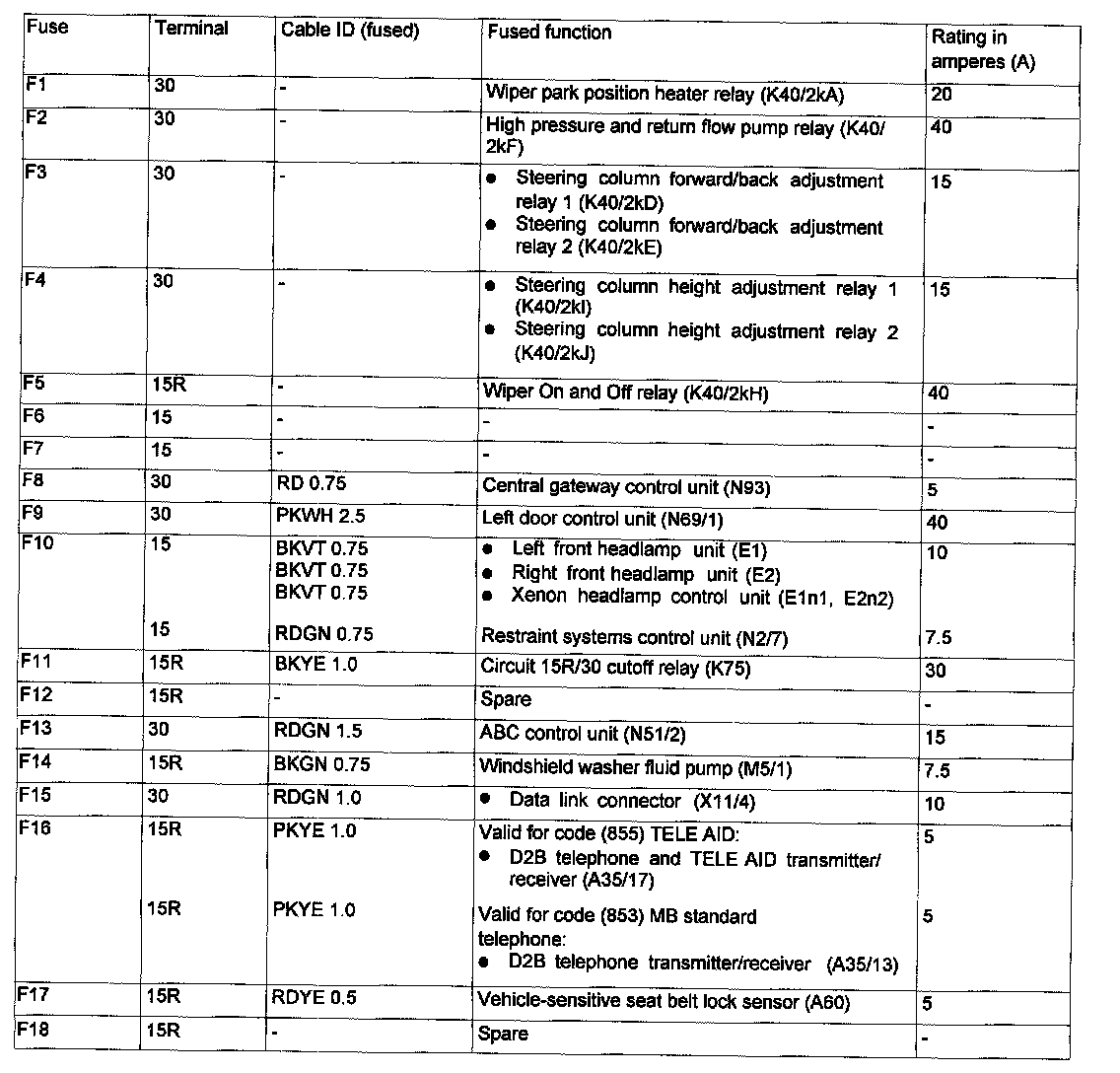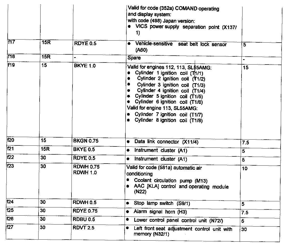 Assignment in the Fuse and Relay Box in the Left Engine Compantment