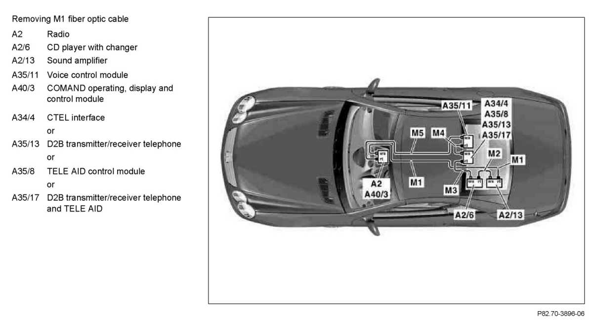 - Fiber optic cable between COMAND/radio and luggage box in left rear