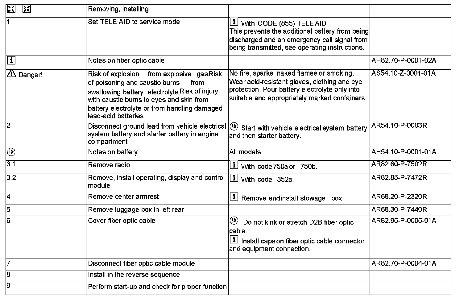 AR82.70-P-0004RA Remove/Install Fiber Optic Cable