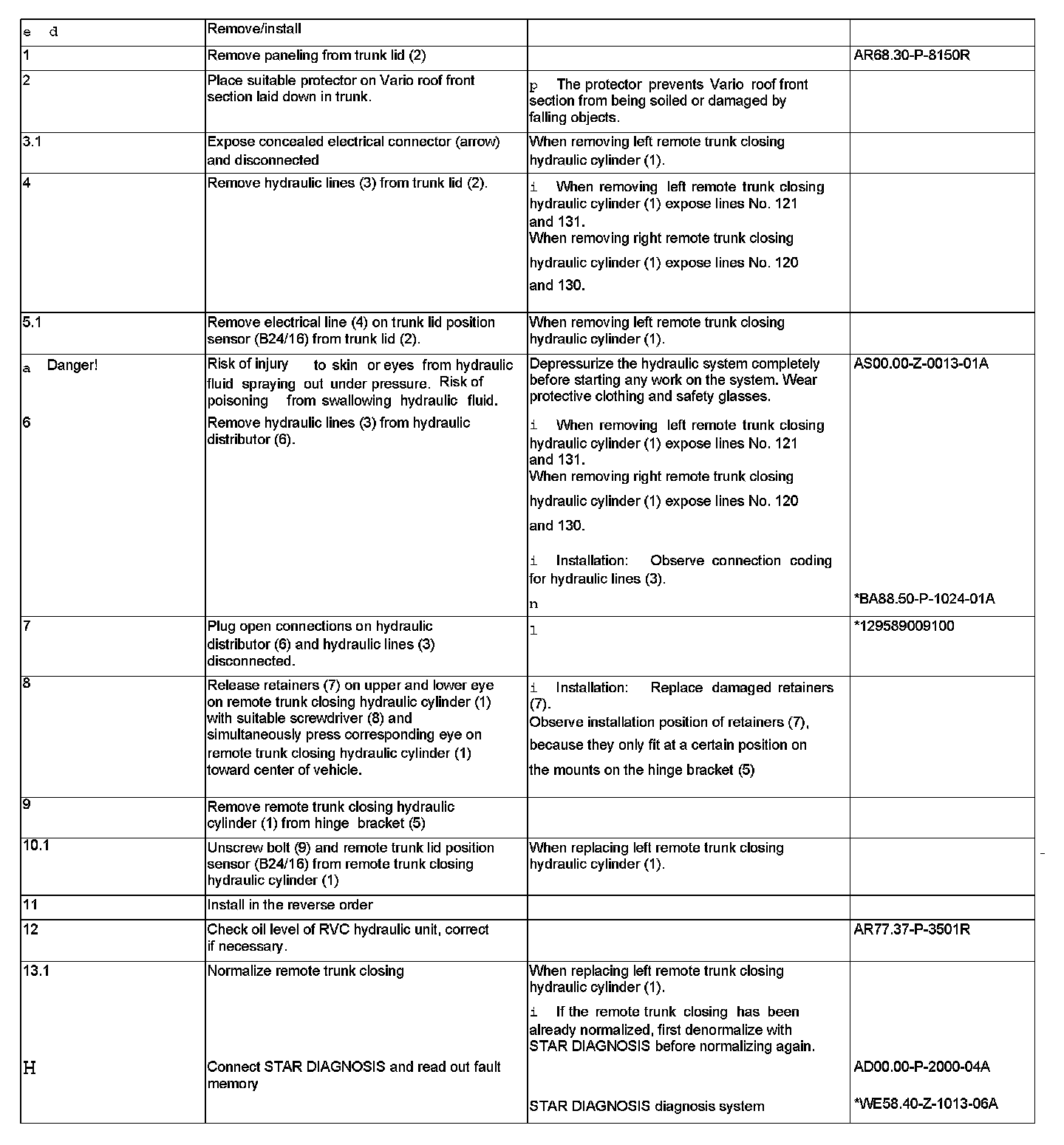 AR88.50-P-5071R Remove/Install Hydraulic Cylinder For Remote Trunk Closing