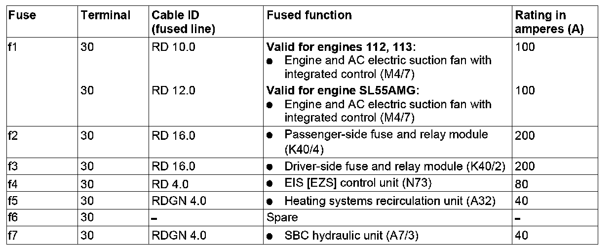 GF54.15-P-1256-07RA Fuse Assignment Of Front Prefuse Box