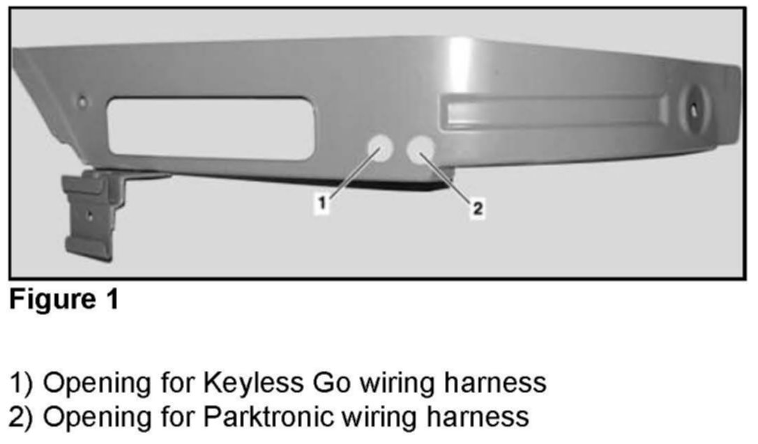On vehicles as of VIN F124254 (June 2006), the opening for the Keyless Go wiring harness (1, Figure 1) is discontinued in series production. This opening is also discontinued in the replacement part (A 230 630 01 60 - floor, left side).