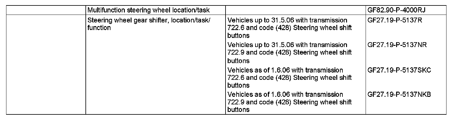^ Steering wheel gear shifter MINUS (S110/1) and steering wheel gear shifter PLUS (S111/1) (vehicles as of 1.6.06 with code (428) Steering wheel shift buttons)
