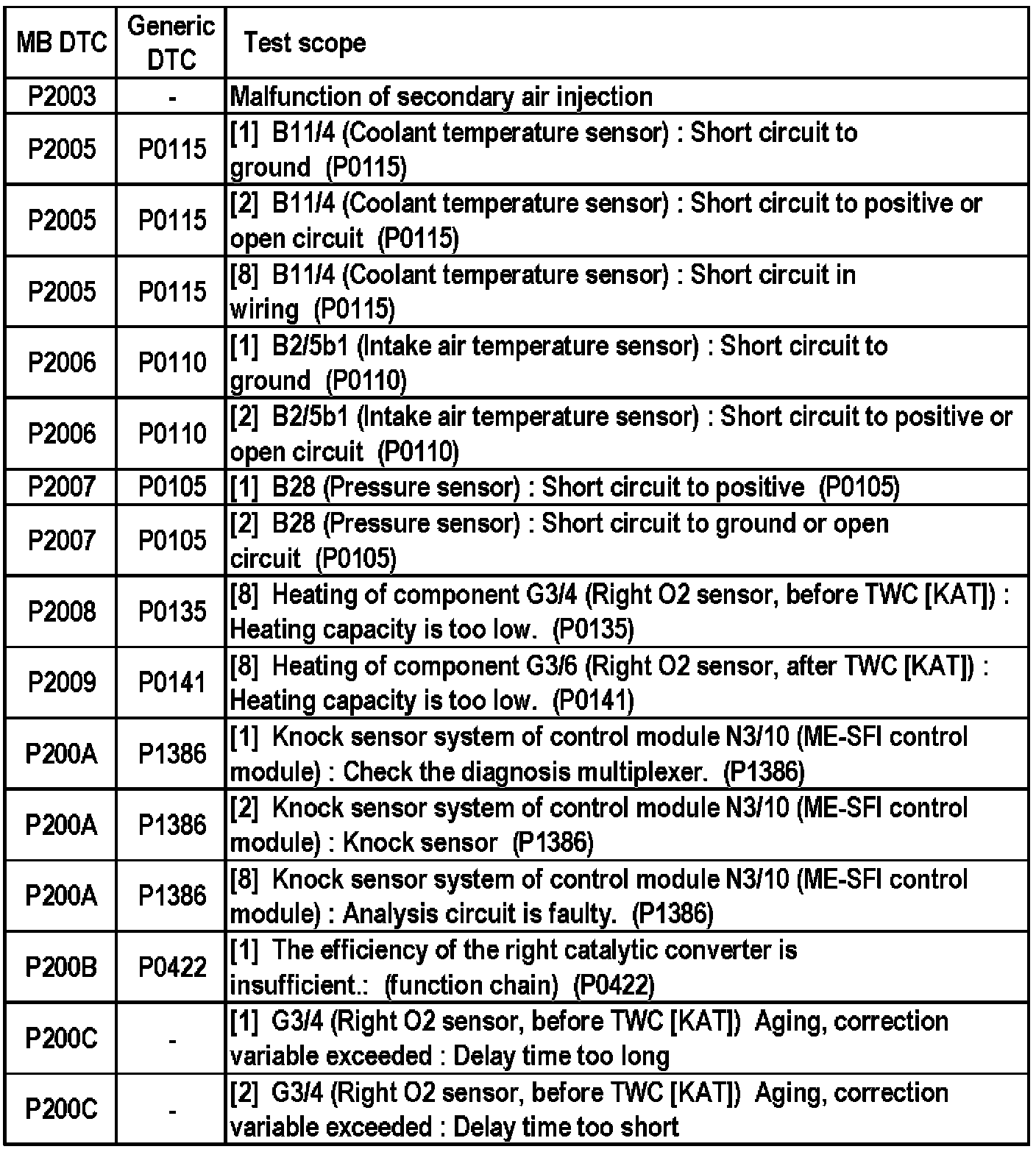 MB DTC P2003 - P200C: