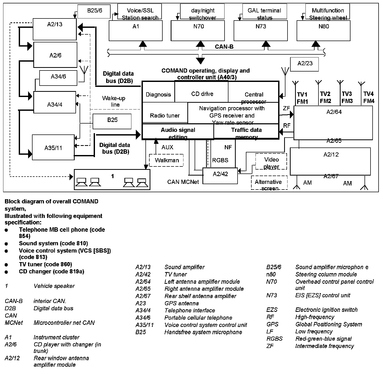 ^ The CAN MCNet, which is independent of the interior CAN, is used for the data exchange of the COMAND operating, display and controller unit (A40/3) with the optional TV tuner (A2/42) components