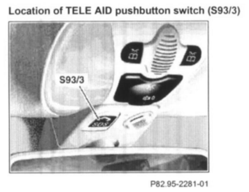 Location of TELE AID pushbutton switch (S93/3):