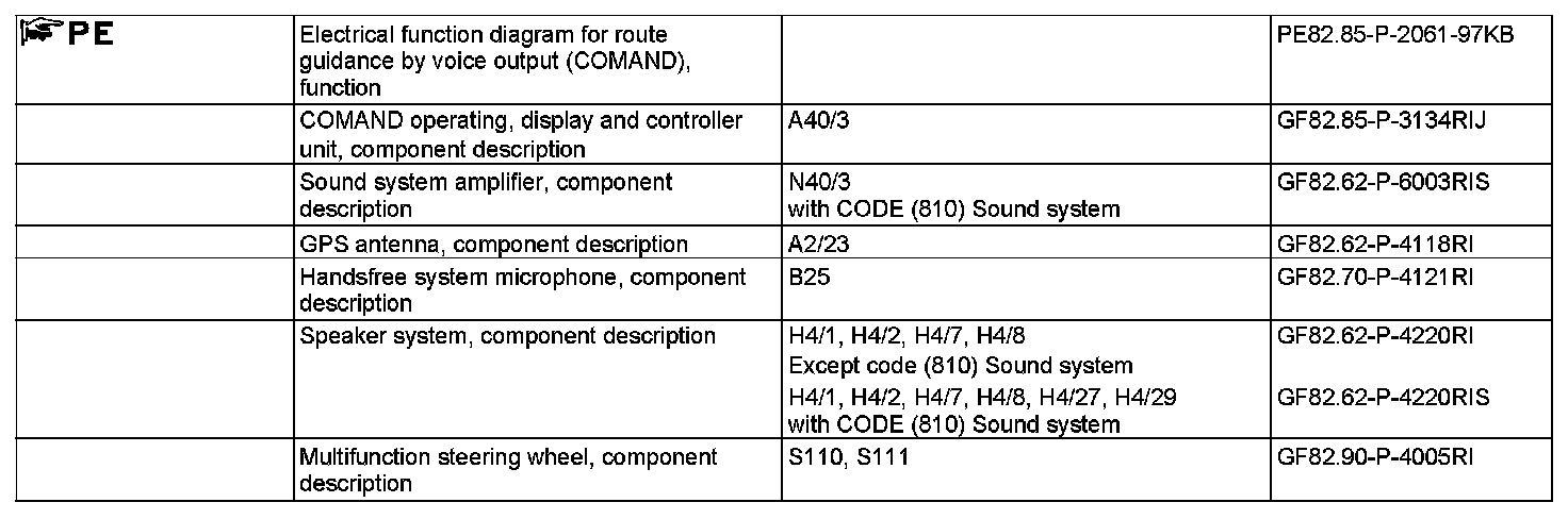 On vehicles except code (810) Sound system, the voice output signals are amplified in the COMAND controller unit and output via direct lines at the following speakers: