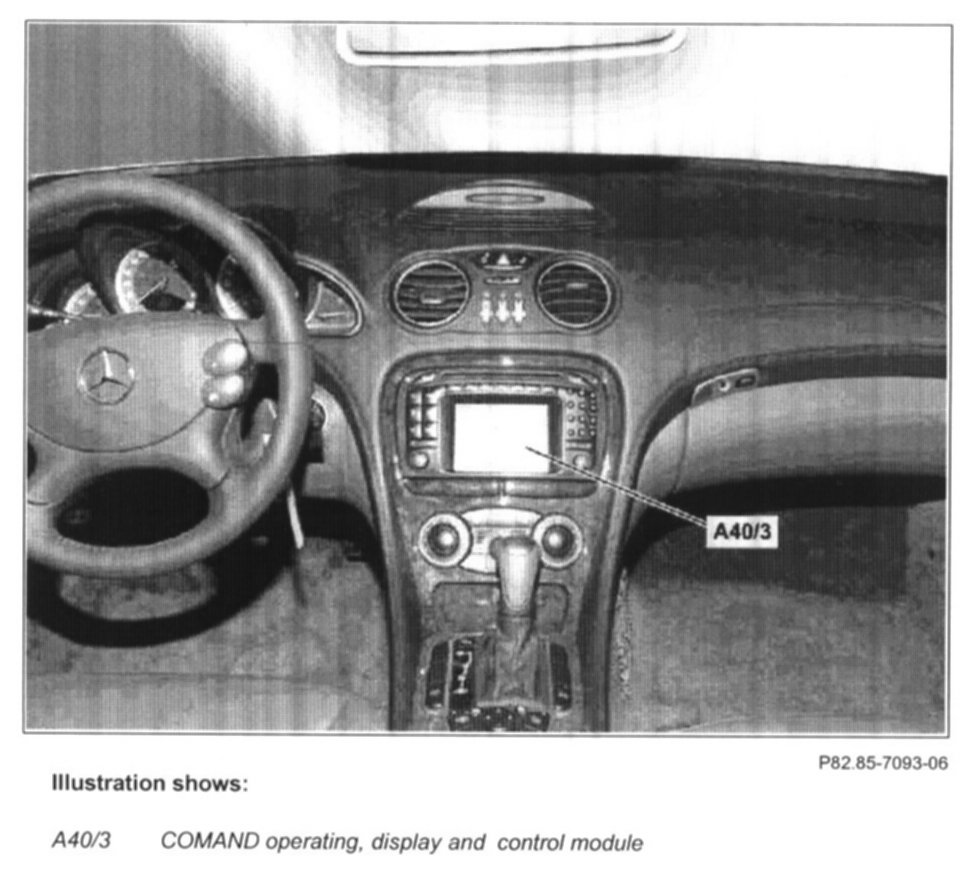 The COMAND operating, display and control (module (A40/3) is integrated into the center console.