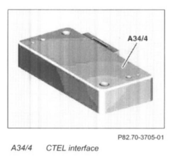 The telephone interface (A34/4) is required for connecting the portable cellular telephone to the digital data bus (D2B).