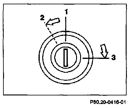It is not possible to open the trunk lid if the lock cylinder is in the 90 degrees position (3). The trunk lid must be turned to the 0 degree position using the mechanical key.