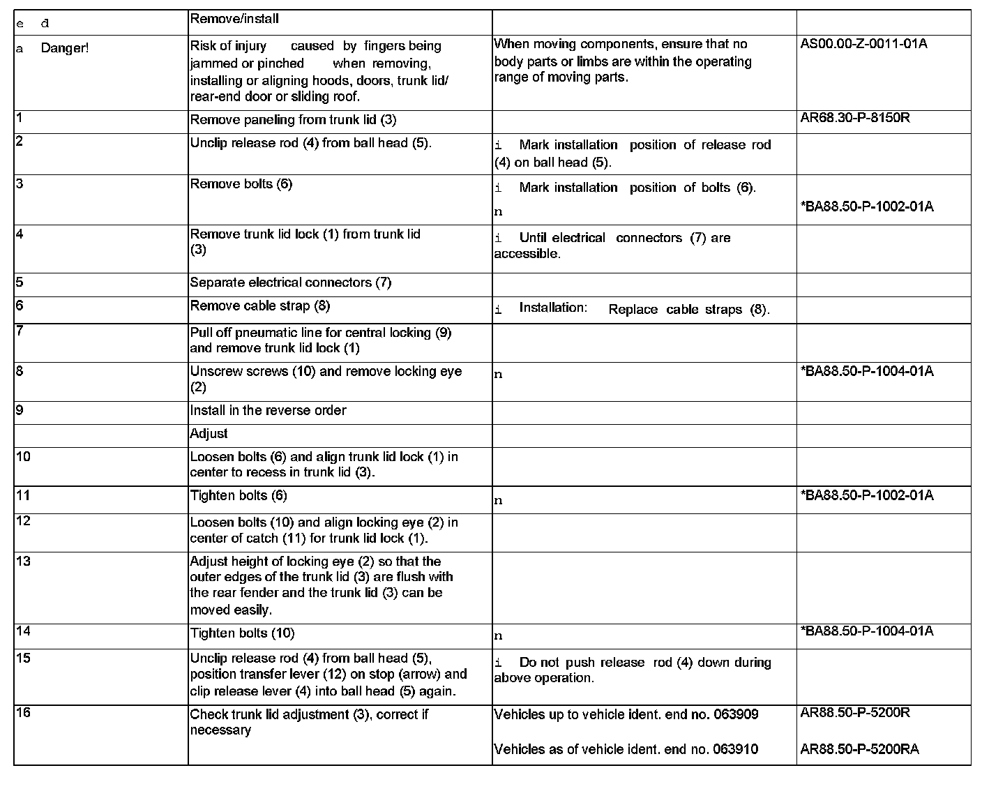 AR88.50-P-5020R Remove/Install and Adjust Trunk Lid Lock and Locking Eye
