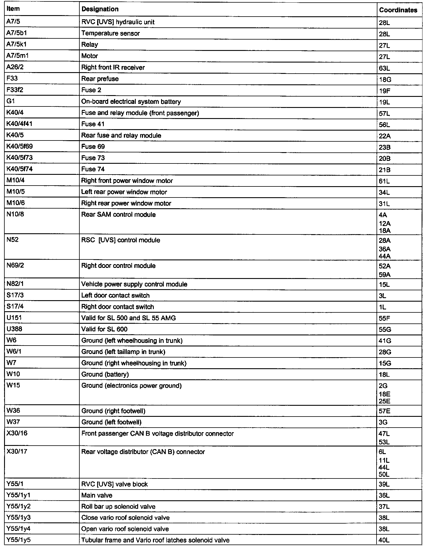 Component Description/Coordinates, A7/5 - Y55/1y5: