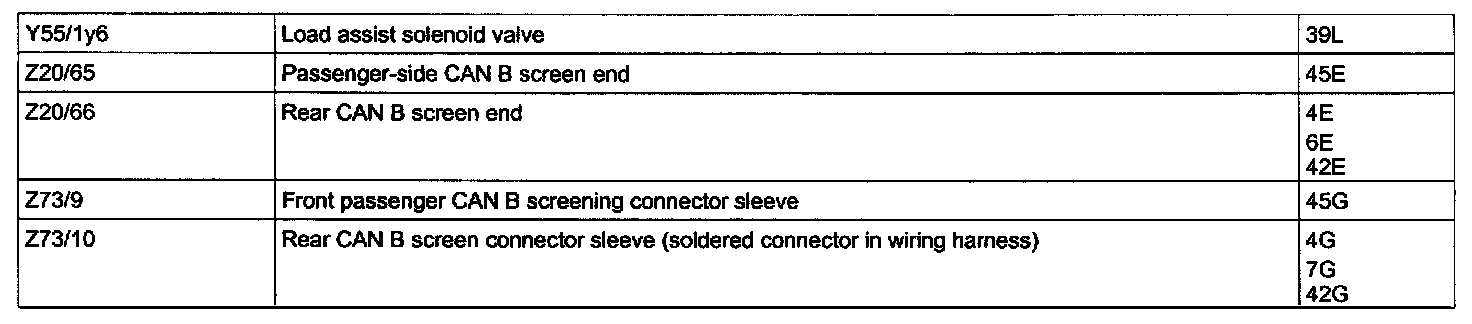 Component Description/Coordinates, Y55/1y6 - Z73/10: