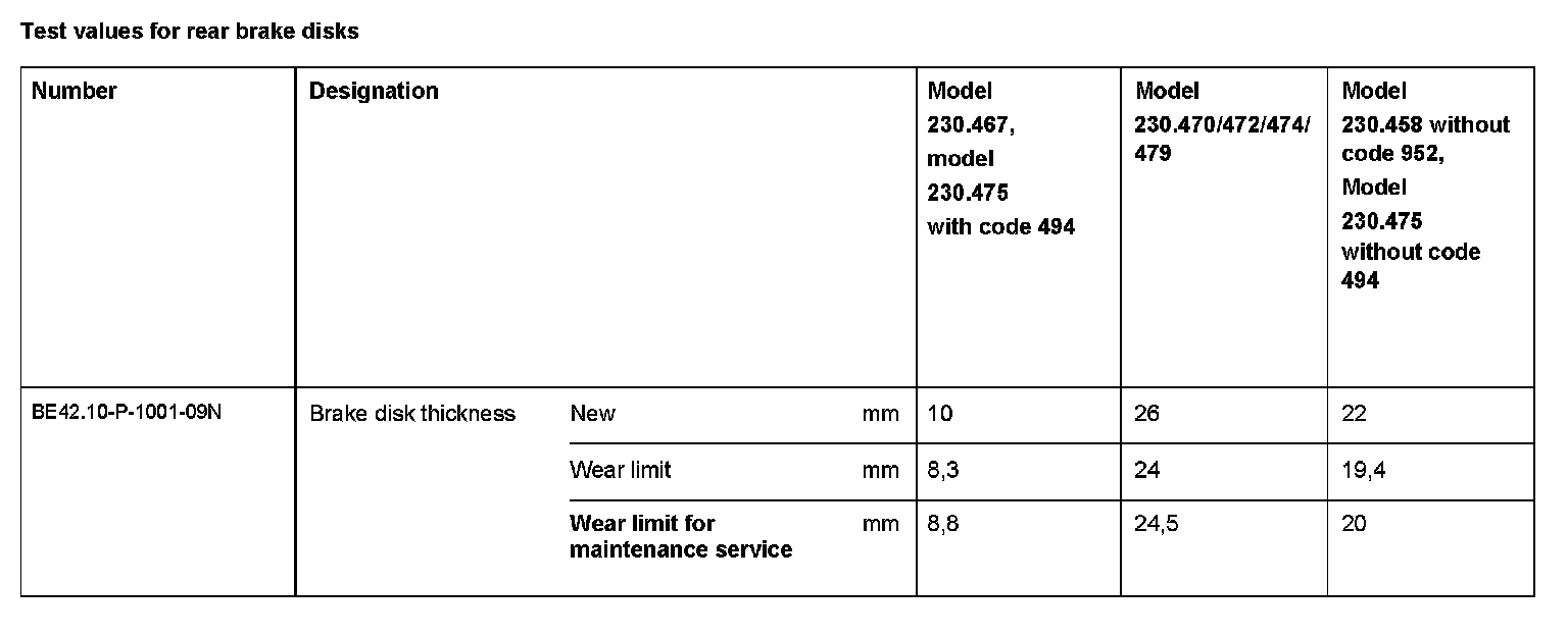 Test Values For Rear Brake Disks: