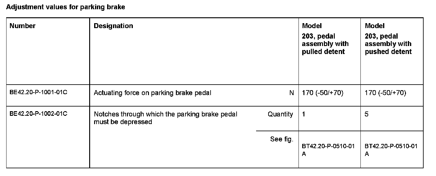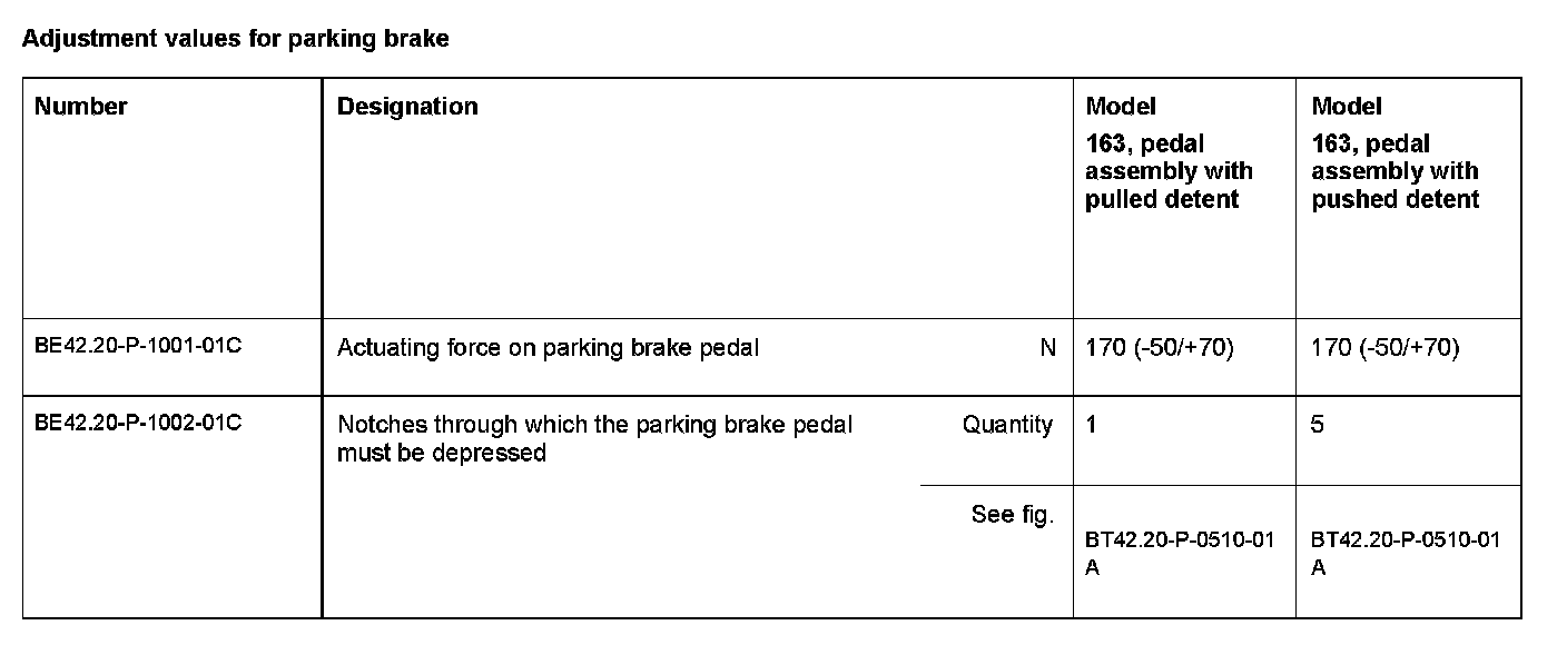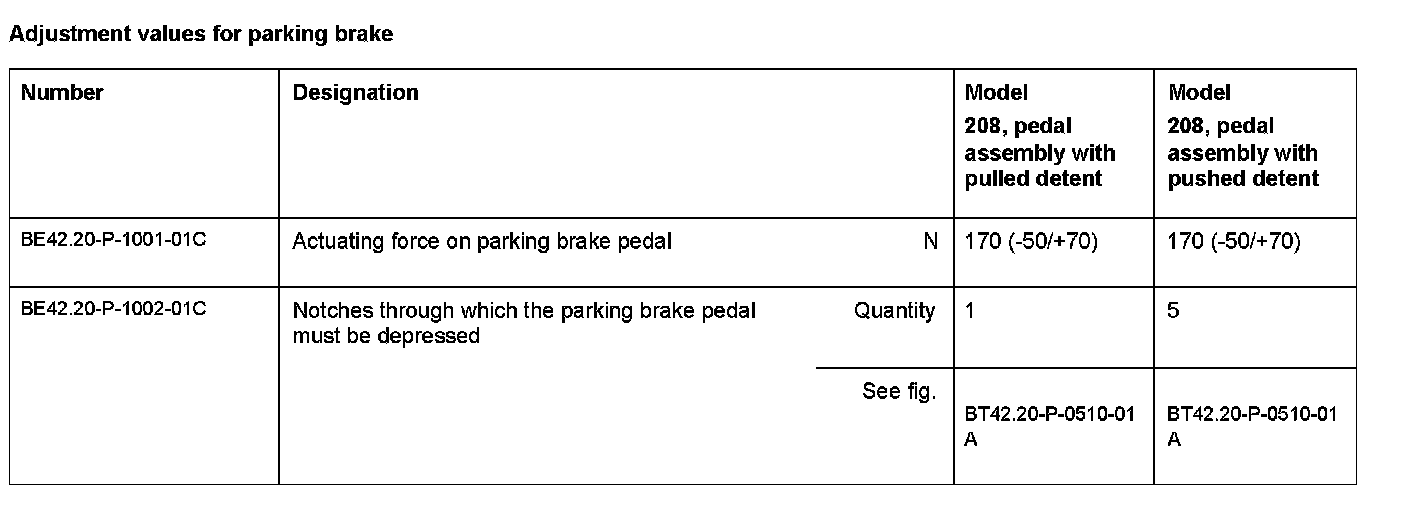 BE42.20-P-1000-01C Parking brakeAdjustment Values For Parking Brake:
