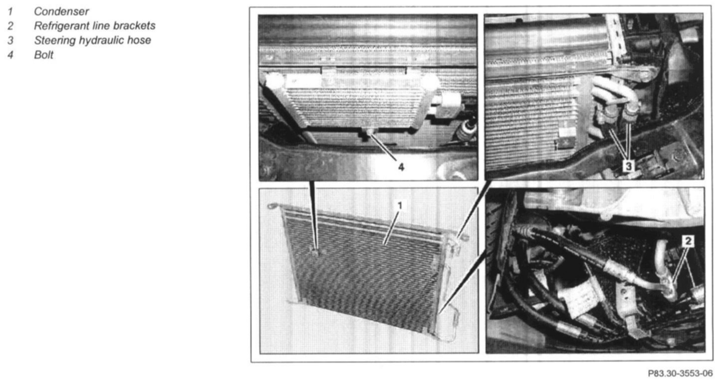 5 Unscrew oil cooler screw (4) at condenser and place oil cooler to the side
