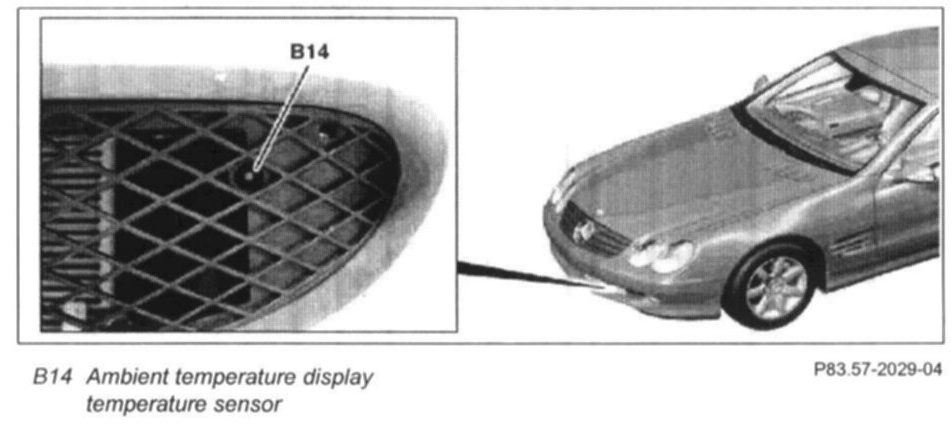 The ambient temperature display temperature sensor (B14) records the ambient temperature.