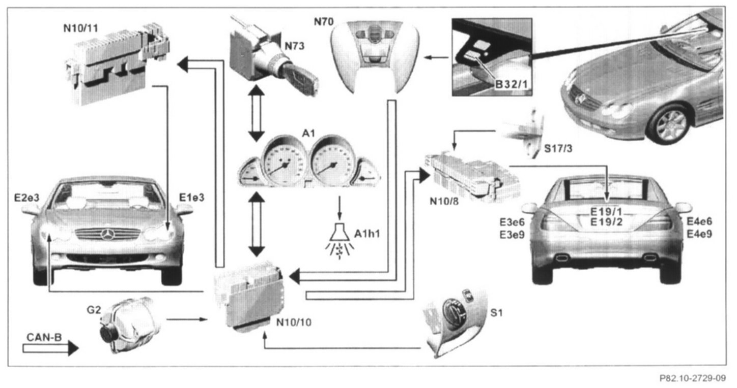 - "Parking lamp ON" or "headlamp ON" by left SAM control module (N10/10) and