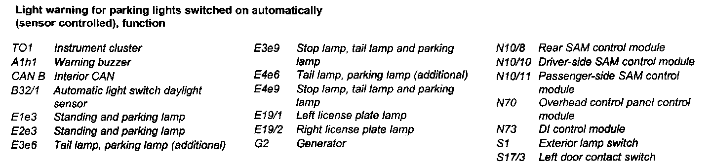 Light Warning For Parking Lights Switched On Automatically (Sensor Controlled), Function, Part 2: