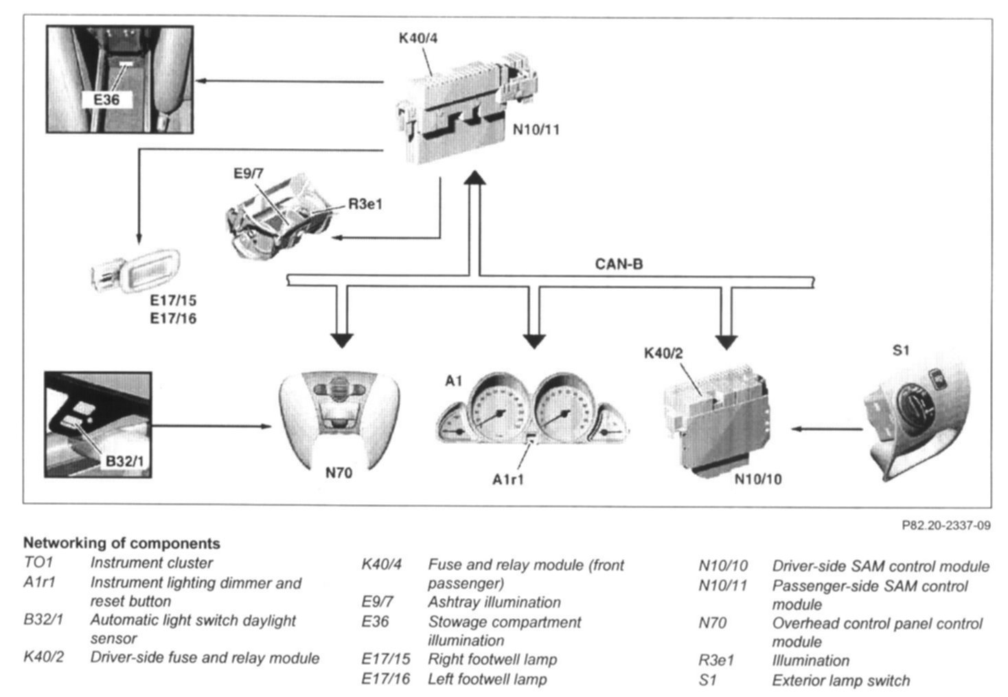 The lamps are actuated by the passenger-side SAM control module (N10/11).