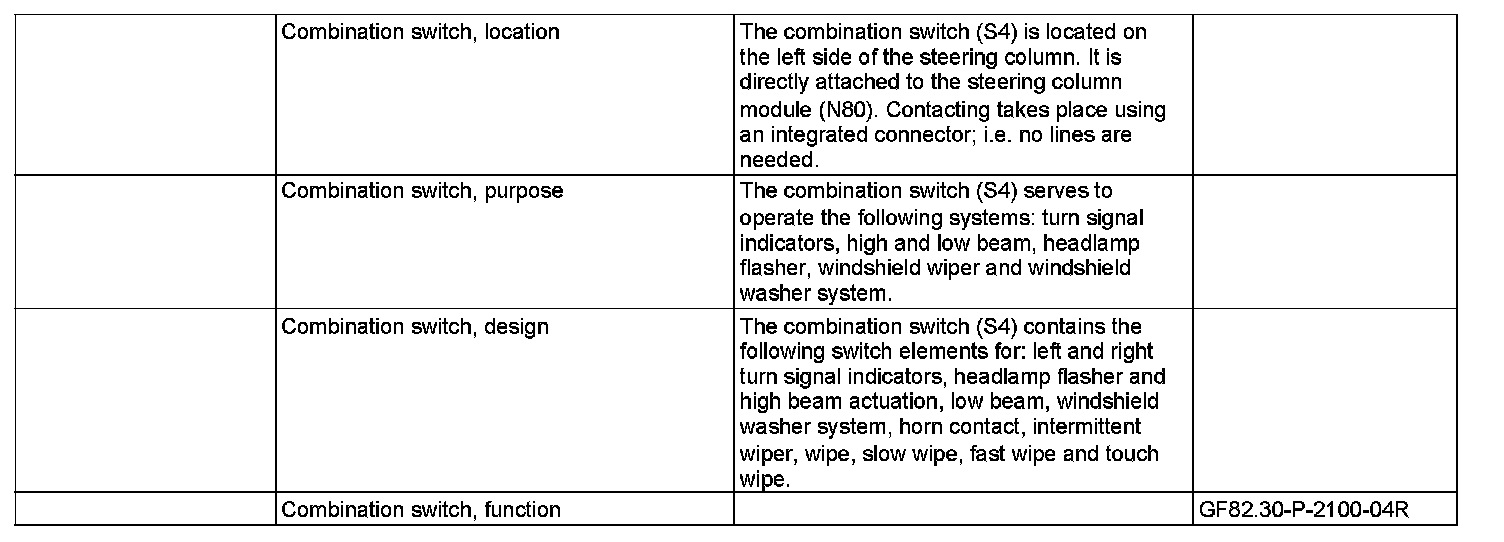 GF82.30-P-2100R Combination Switch, Location/Task/Design/Function