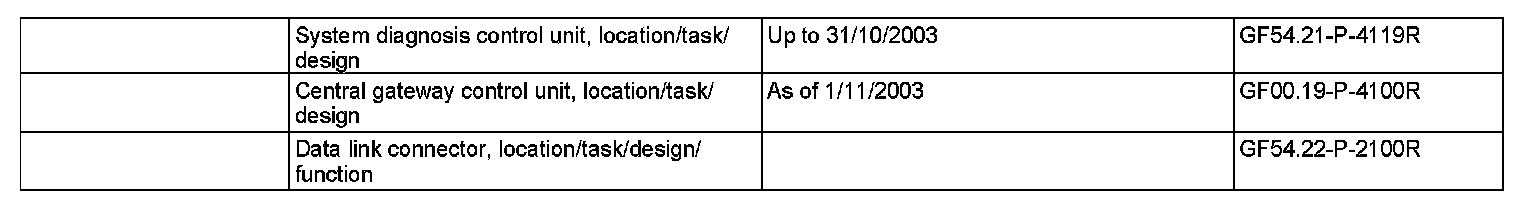 - Up to 31/10/2003 in the system diagnosis control unit (N55)