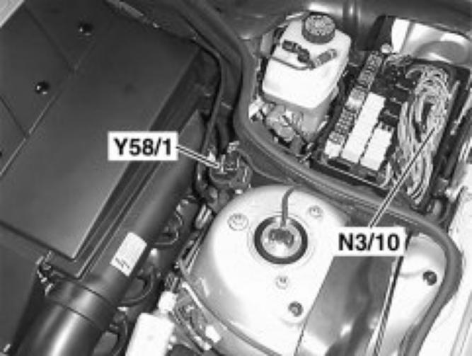 The ME control module is located in the engine compartment at the rear on the left.