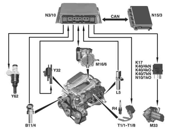 ^ Ignition system In the idle speed range and in line with the coolant temperature the ignition angle is retarded for e.g. 20 seconds in order to increase the exhaust gas temperature.