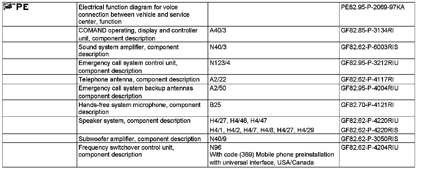 ^ An emergency call system control unit (N123/4) communication module authorized for the corresponding vehicle-related service is configured ex-factory with the telephone number of the corresponding service provider