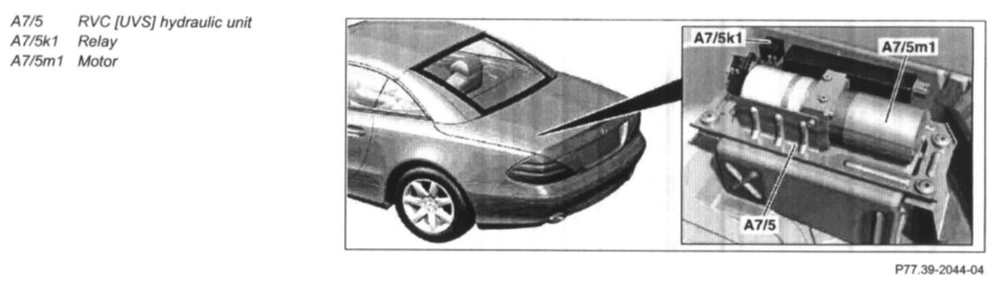 The temperature sensor (A7/5b1) protects the motor (A7/5m1) from an overload due to high temperature.