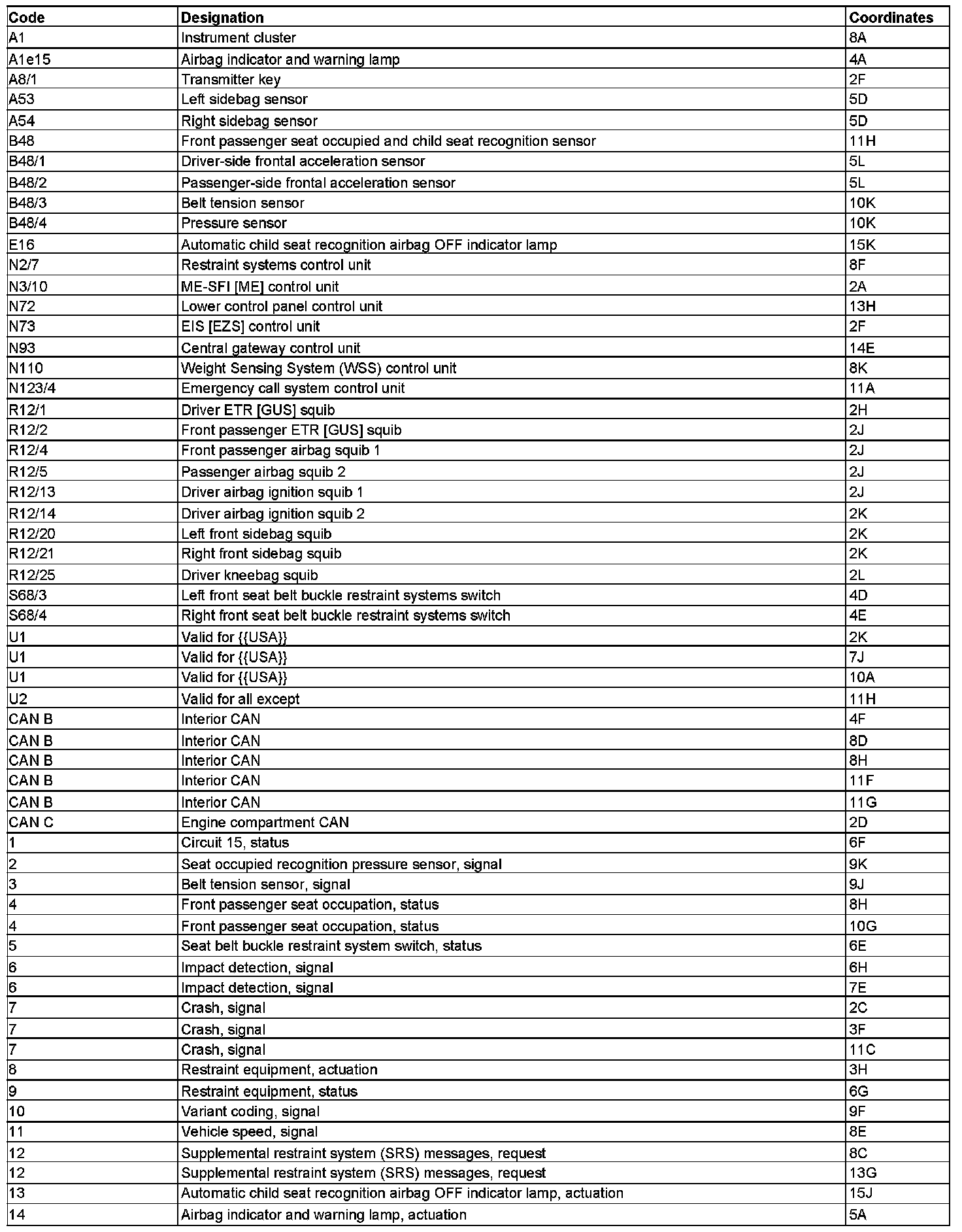 PE91.60-P-2053KA Electrical Function Schematic For Deployment of Supplemental Restraint System (SRS)