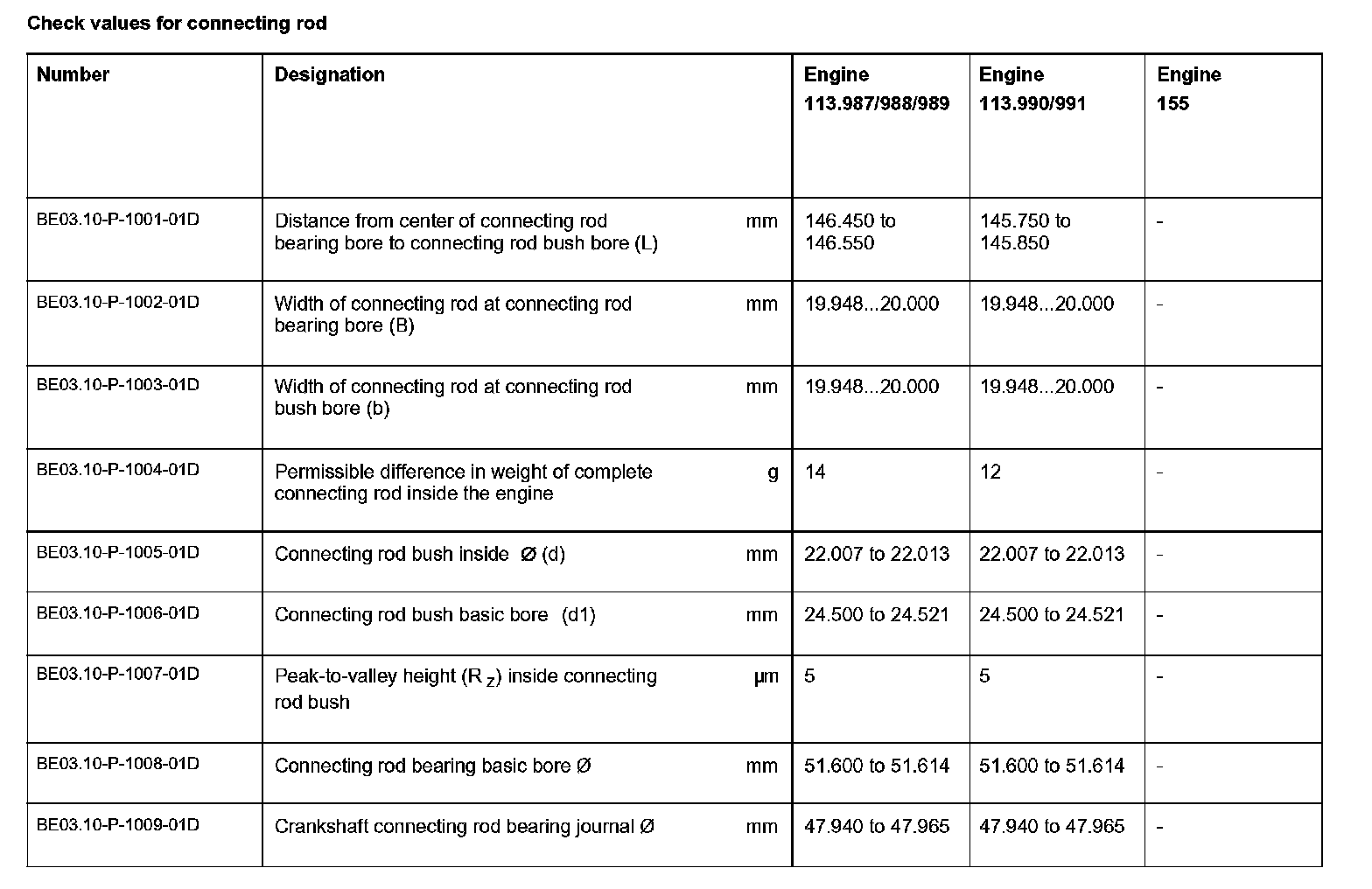 Check values for connecting rod: