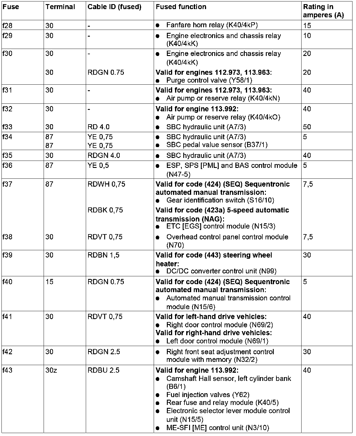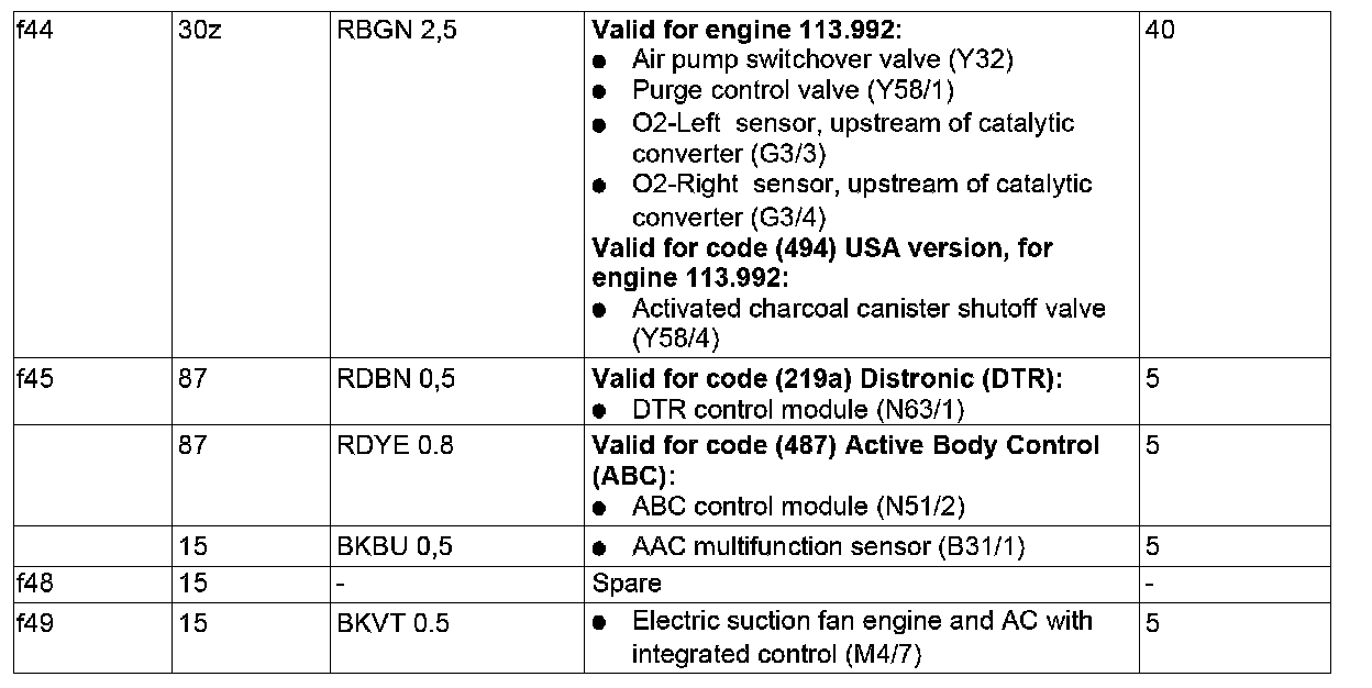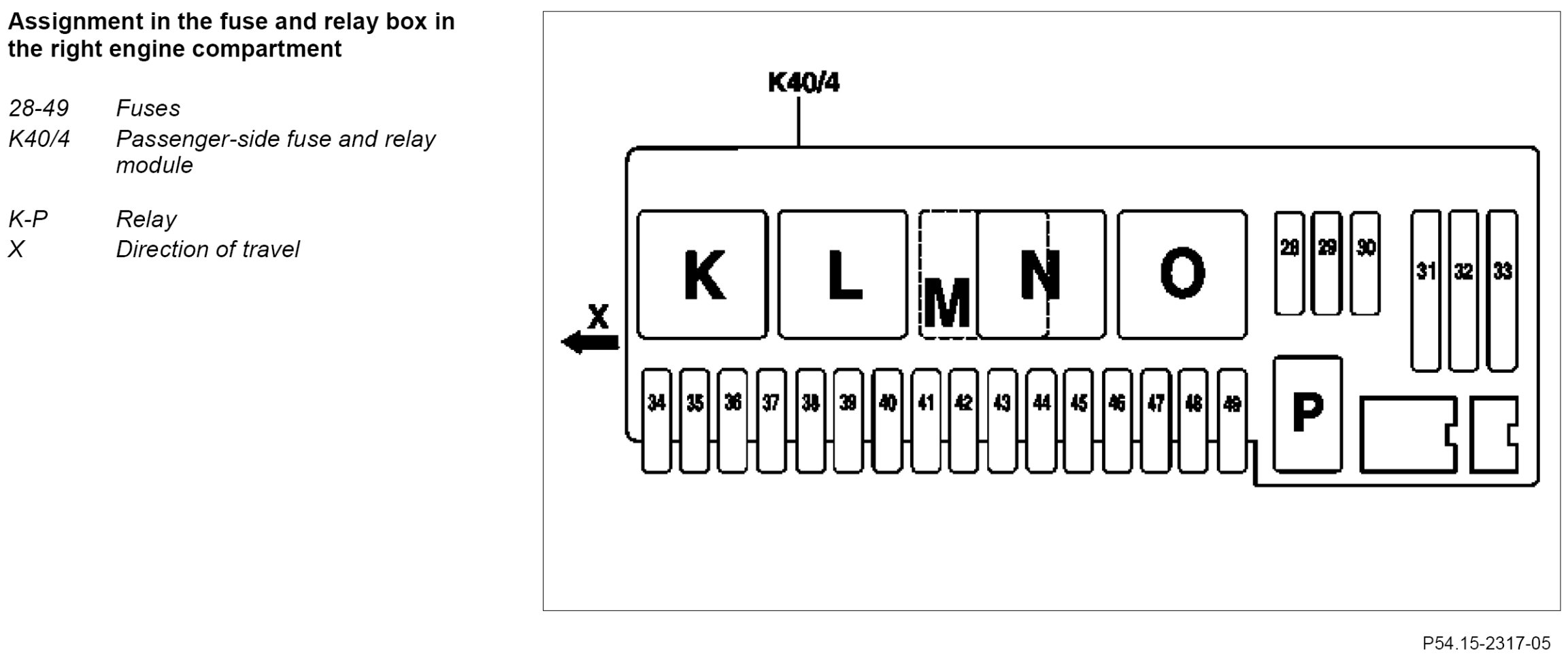 GF54.15-P-1256-02RA Fuse Assignment of Fuse and Relay Box In Right Engine Compartment