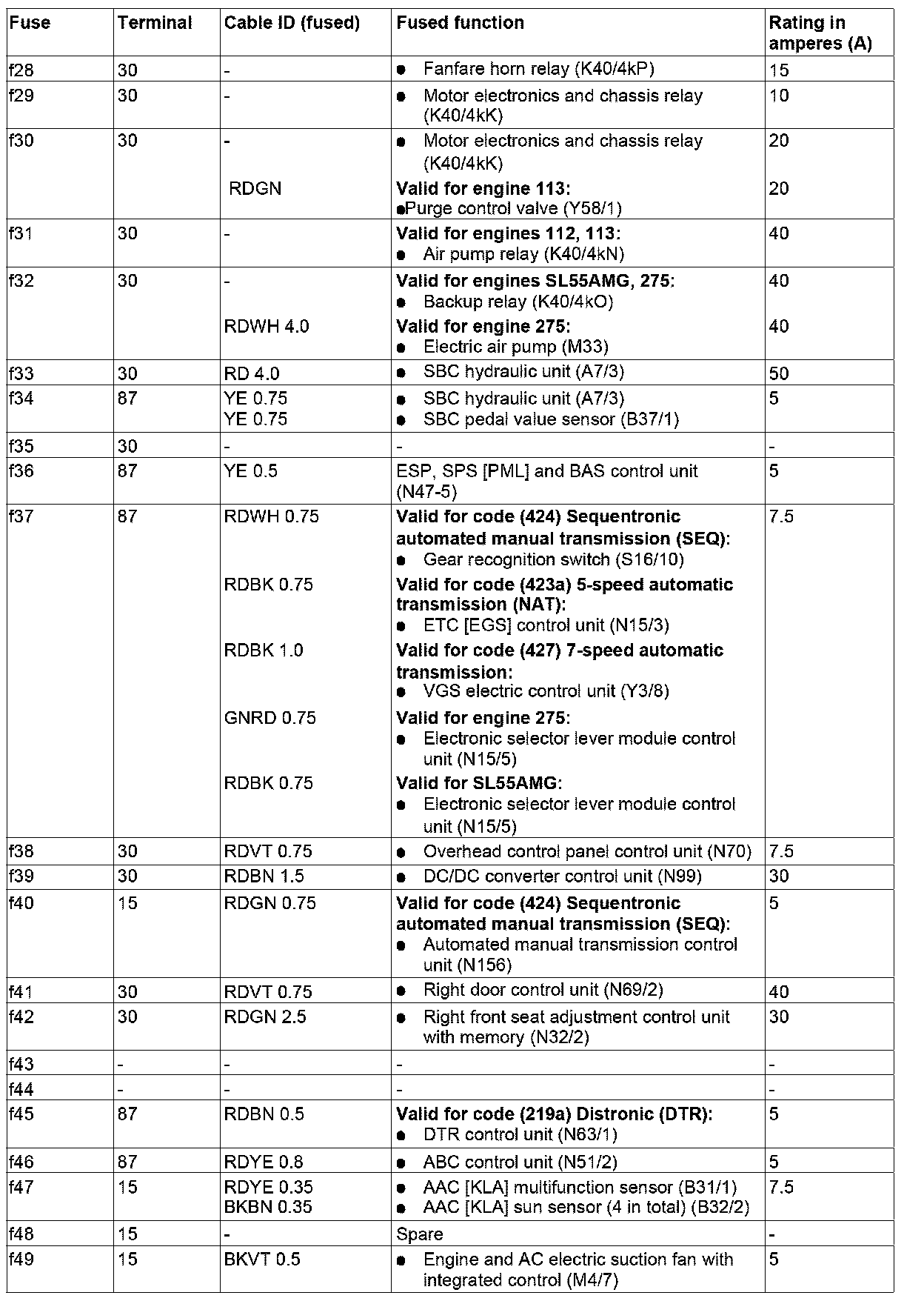 GF54.15-P-1256-02RB Fuse Assignment of Fuse and Relay Box In Right Engine Compartment