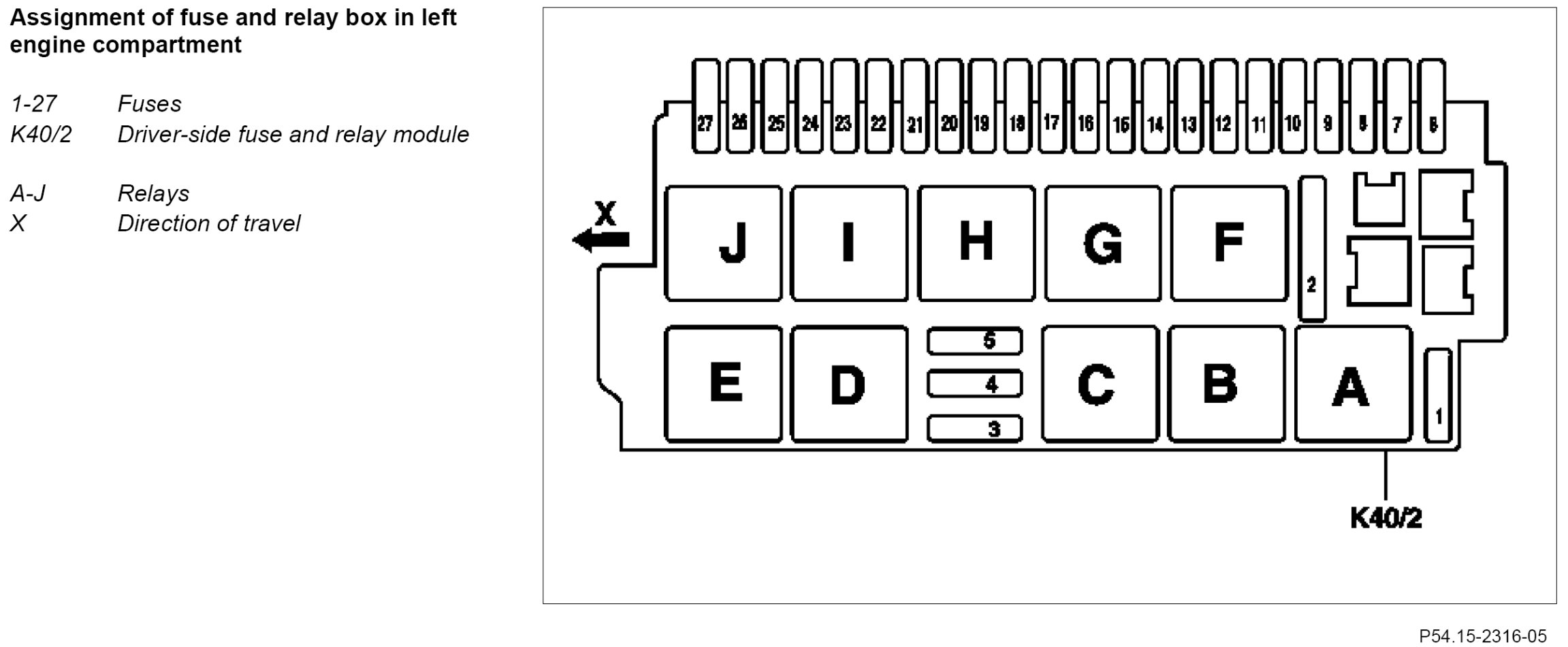 GF54.15-P-1256-03RB Fuse Assignment of Fuse and Relay Box In Left Engine Compartment