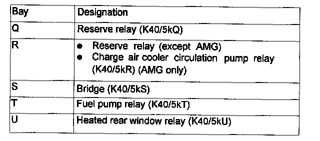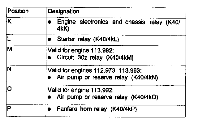 Assignment in the Fuse and Relay Box in the Right Engine Compartment