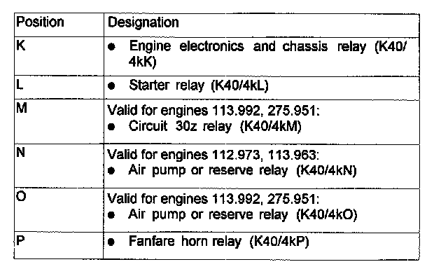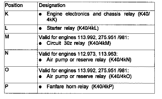 Assignment in the Fuse and Relay Box in the Left Engine Compantment